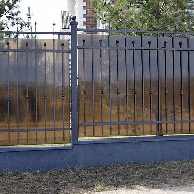 - Металл. Вариантов металлических заборов множество: это могут быть сварные, чаще всего из кирпича выполняют столы, между которыми пространство заполняется металлическими или деревянными секциями, кованые и штампованные решетки. Такие ограждения, создают эффект легкости, обладая при этом высокой износостойкостью и долговечностью.